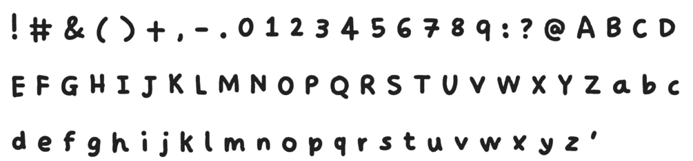 Includes A-Z letters and 0-9 numbers, plus the extra glyphs shown on the screenshot.